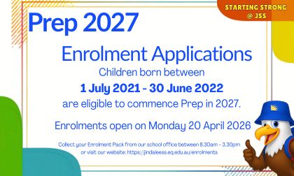 To enrol at Jindalee State School in 2027, please complete and return and Application for Enrolment pack which can be downloaded or obtained from our office. Remember to include any extra documentation as indicated in the enrolment application.
